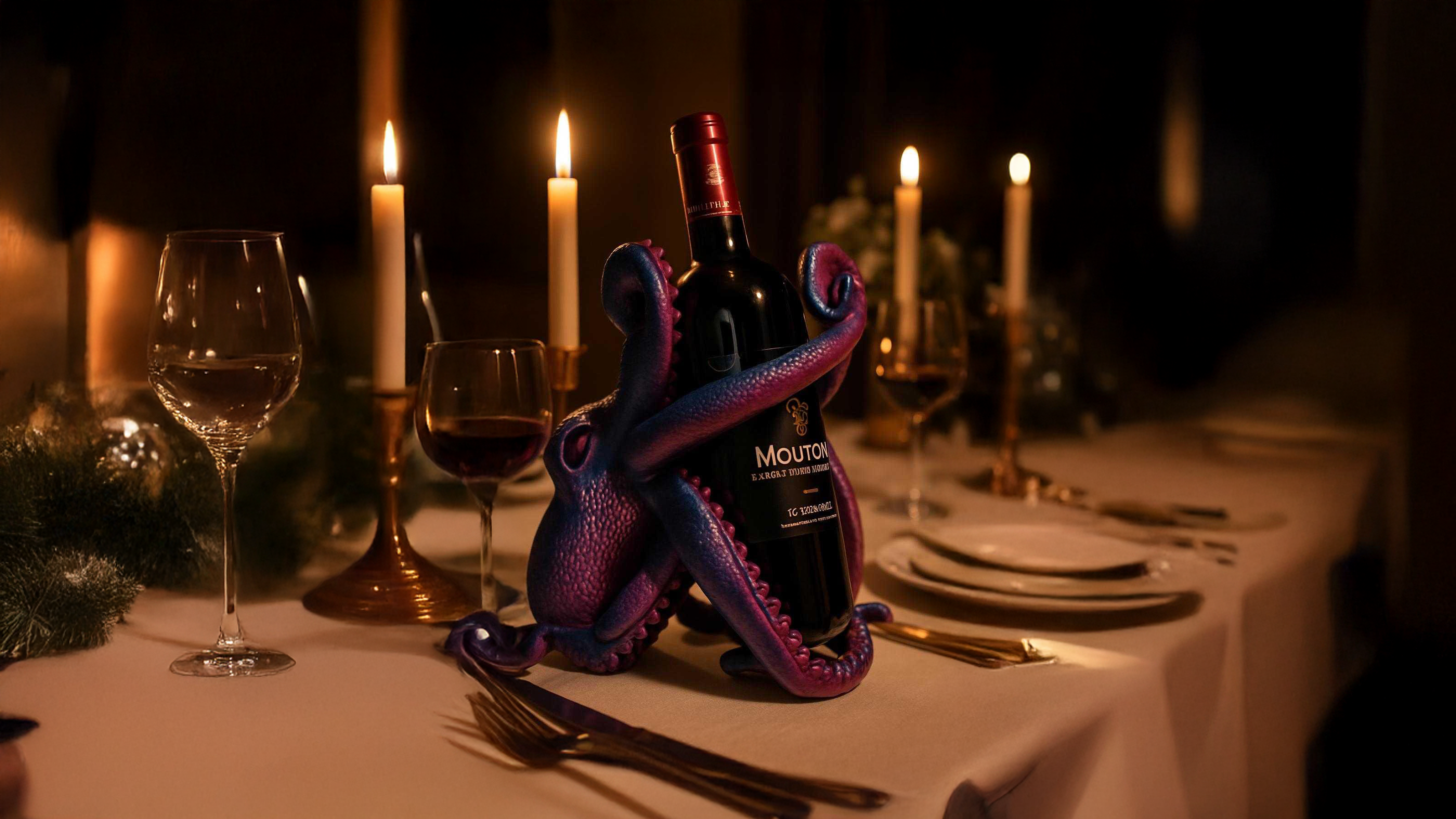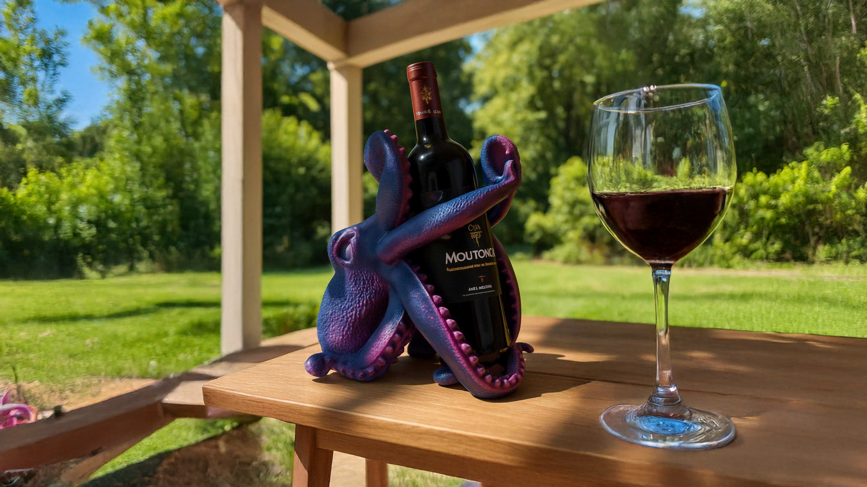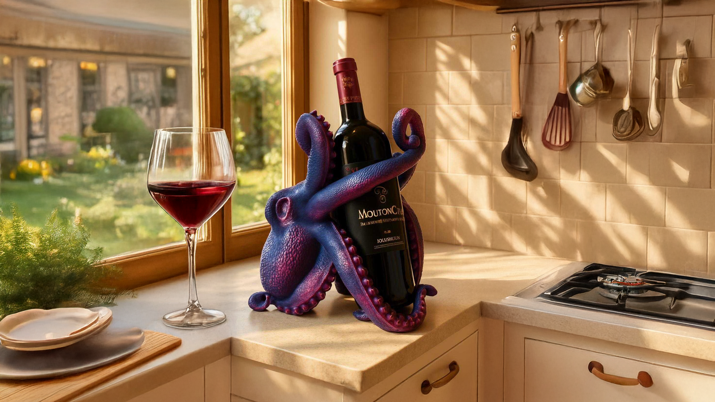 Der perfekte Halt: Unser Oktopus ist ein echter Kraftprotz. Seine kunstvoll geformten Arme umschlingen jede Standard-Weinflasche oder auch andere Spirituosenflaschen sicher und stilvoll. Schluss mit dem Herumrollen auf der Arbeitsplatte!